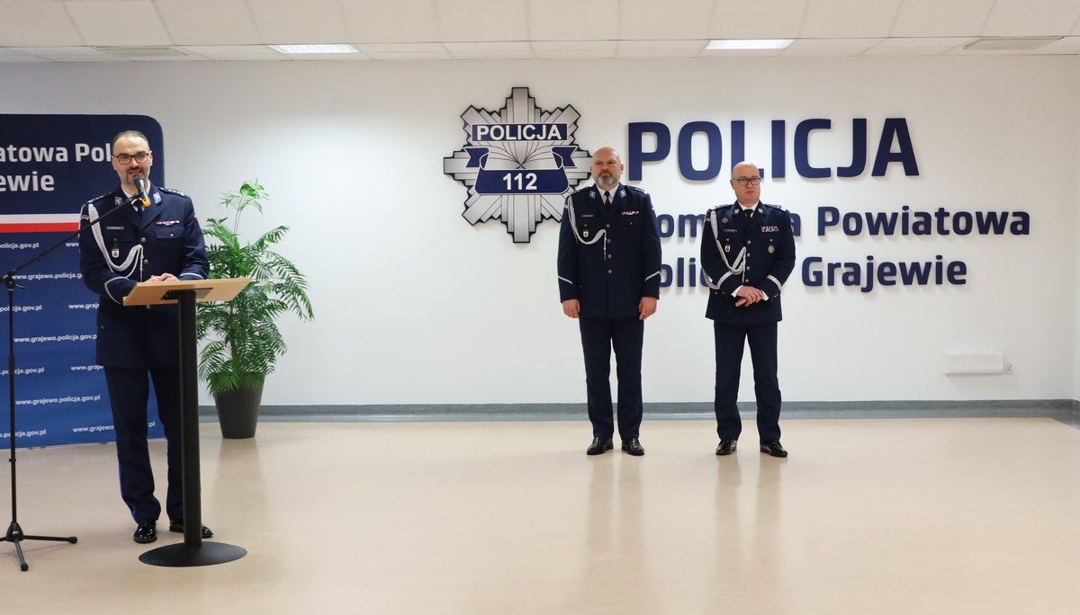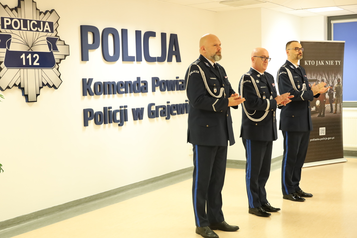 W Komendzie Powiatowej Policji w Grajewie odbyła się uroczystość związana ze zmianą szefa grajewskich policjantów. Ze Sztandarem Komendy Powiatowej Policji w Grajewie przywitał się obejmujący stanowisko inspektor Artur Maksymiuk. Pożegnał się natomiast inspektor Artur Brodowski, który przez osiem ostatnich lat stał na czele grajewskiej komendy Policji. Uroczystego wprowadzenia dokonał Komendant Wojewódzki Policji w Białymstoku nadinspektor Kamil Borkowski.