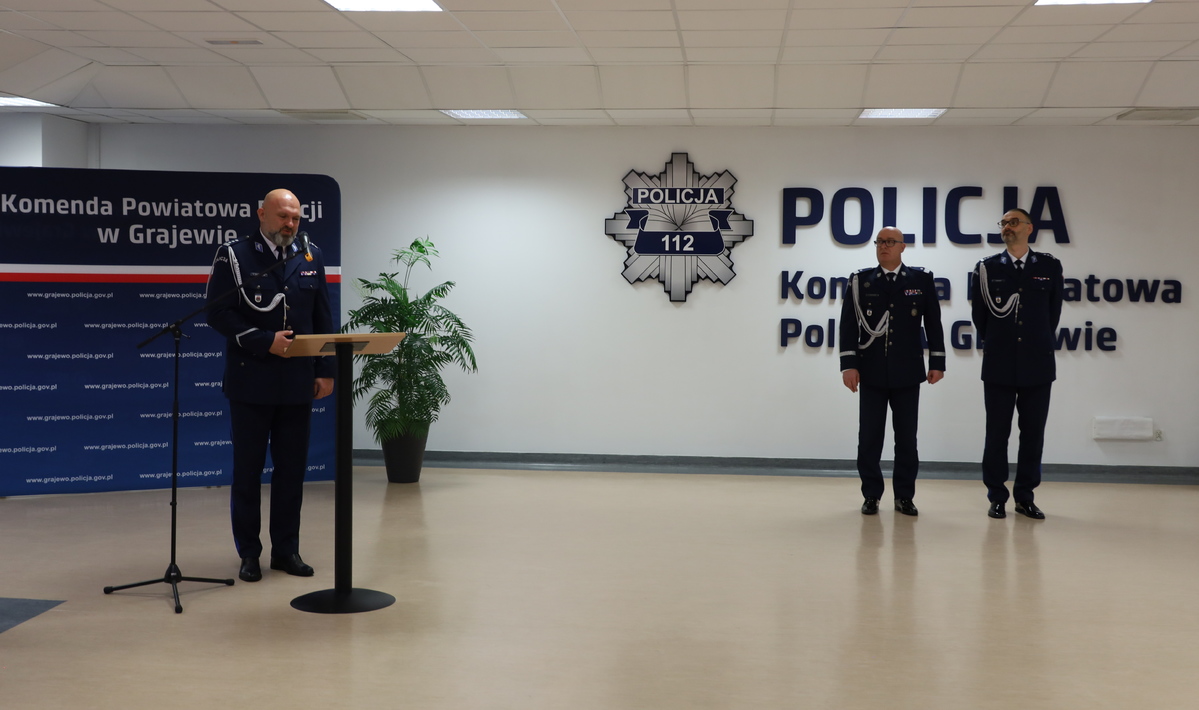 Decyzją Komendanta Wojewódzkiego Policji w Białymstoku, obowiązki Komendanta Powiatowego Policji w Grajewie zostały powierzone inspektorowi Arturowi Maksymiukowi. Zastąpił na tym stanowisku inspektora Adama Brodowskiego, który będzie pełnił obowiązki Komendanta Powiatowego Policji w Augustowie. W uroczystości wzięli udział: Komendant Wojewódzki Policji w Białymstoku nadinspektor Kamil Borkowski, Starosta Powiatu Grajewskiego Waldemar Remfeld, Burmistrz Miasta Grajewo Maciej Bednarko, Burmistrz Szczuczyna Marcin Wileński, Wójt Gminy Wąsosz Tomasz Krukowski, Wójt Gminy Radziłów Krzysztof Milewski, Komendant Powiatowy Państwowej Straży Pożarnej w Grajewie brygadier Arkadiusz Lichota, Kapelan Komendy Powiatowej Policji w Grajewie - ksiądz Tomasz Chludziński, Wiceprezes Koła Emerytów i Rencistów w Grajewie Pan Ireneusz Gliniecki wraz z przedstawicielami Koła oraz kadra kierownicza, policjanci i pracownicy grajewskiej komendy. Komendant Wojewódzki Policji w Białymstoku nadinspektor Kamil Borkowski, w swoim przemówieniu podkreślił gotowość inspektora Artura Maksymiuka do podejmowania wyzwań i rozwiązywania problemów. Podkreślił posiadane przygotowanie, umiejętności i wiedzę, poparte doświadczeniem zawodowym. Komendant Wojewódzki Policji w Białymstoku życzył sukcesów w służbie na obejmowanym stanowisku Komendanta Powiatowego Policji w Grajewie. Gratulacje przekazali również zaproszeni goście oraz I Zastępca Komendant Powiatowego Policji w Grajewie – podinspektor Joanna Kiluk.