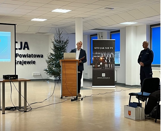 Wczoraj w Komendzie Powiatowej Policji w Grajewie odbyła się konferencja podsumowująca projekt pn. „Edukacja dla bezpieczeństwa – podniesienie świadomości uczestników ruchu drogowego w Powiecie Grajewskim”, w ramach „Rządowego programu ograniczania przestępczości i aspołecznych zachowań Razem bezpieczniej na lata 2025–2028”– Edycja 2025. W ramach projektu grajewscy policjanci przeprowadzili kilkanaście spotkań z uczniami szkół podstawowych i ponadpodstawowych na temat bezpieczeństwa w ruchu drogowym. Funkcjonariusze korzystali z nowoczesnego sprzętu zakupionego na potrzeby projektu. Korzystając z trenażera czasu reakcji młodzież i dorośli mogli poprawić swój refleks oraz koncentrację. Natomiast w symulatorze czasu reakcji mogli sprawdzić realny czas reakcji i drogię hamowania w różnych warunkach. Osoby uczestniczące w spotkaniach z policjantami korzystali również z urządzenia wskazującego czas reakcji kierowcy podczas nagłych, niespodziewanych sytuacji na drodze, z uwzględnieniem niezbędnej i prawidłowej techniki hamowania awaryjnego z systemem ABS przy prędkościach 50, 75 i 100 km/h. Całkowita wartość projektu, to 92 170,00 zł z czego 73 736,00 zł stanowi dofinansowanie z Rządowego Programu Ograniczania Przestępczości i Aspołecznych Zachowań „Razem Bezpieczniej” na lata 2025-2028, pozostałe środki zostały pokryte z budżetu Powiatu Grajewskiego.