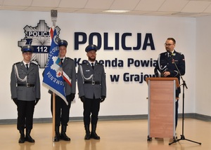 Grajewscy policjanci uczcili 103 rocznicę powstania Polskiej Policji. Uroczystej zbiórce przewodził Komendant Powiatowy Policji w Grajewie młodszy inspektor Adam Brodowski.