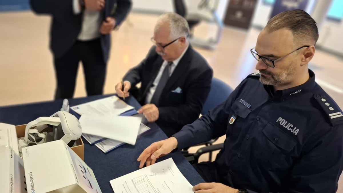 W Komendzie Powiatowej Policji w Grajewie odbyło się oficjalne przekazanie nowoczesnego sprzętu szkoleniowego, który wesprze funkcjonariuszy w działaniach profilaktycznych. Starosta Grajewski przekazał na ręce Komendanta Powiatowego Policji w Grajewie nowoczesne okulary wirtualnej rzeczywistości (VR) oraz symulatory, które pozwolą w realistyczny sposób prezentować skutki niebezpiecznych zachowań na drodze i uczyć właściwych reakcji w sytuacjach zagrożenia. Nowoczesne narzędzia będą wykorzystywane przede wszystkim w pracy profilaktycznej z młodzieżą i kierowcami. Dzięki technologii VR uczestnicy spotkań będą mogli „na własne oczy” przekonać się, jak zachować się w sytuacji zagrożenia oraz jak udzielić pierwszej pomocy. Podczas spotkania Komendant Powiatowy Policji w Grajewie oraz Starosta Grajewski podkreślili znaczenie współpracy pomiędzy Policją a samorządem powiatowym. Wspólne inicjatywy, takie jak przekazanie sprzętu, realnie wspierają działania na rzecz bezpieczeństwa mieszkańców powiatu. W wydarzeniu uczestniczyli także uczniowie klasy mundurowej z Zespołu Szkół nr 2 w Grajewie, którzy z zainteresowaniem przyglądali się prezentacji możliwości nowych urządzeń. Młodzież miała okazję zobaczyć, jak w praktyce Policja wykorzystuje nowoczesne technologie do nauki i profilaktyki. Przekazany sprzęt to kolejny krok w kierunku nowoczesnego podejścia do edukacji i prewencji. Dzięki wsparciu samorządu grajewska Policja będzie mogła jeszcze skuteczniej realizować swoje zadania i promować bezpieczne zachowania wśród mieszkańców regionu